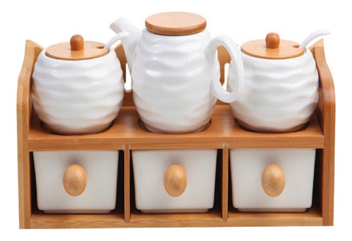 Este porta condimentos combina funcionalidade e sofisticação em um design moderno e elegante. Fabricado com porcelana de alta qualidade e bambu natural, ele é perfeito para organizar e armazenar seus temperos favoritos, adicionando charme e praticidade ao seu dia a dia.